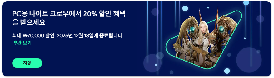 나이트 크로우를 더욱 합리적으로 즐기실 수 있도록 Google Play와 함께하는 특별 할인 프로모션을 안내드립니다.