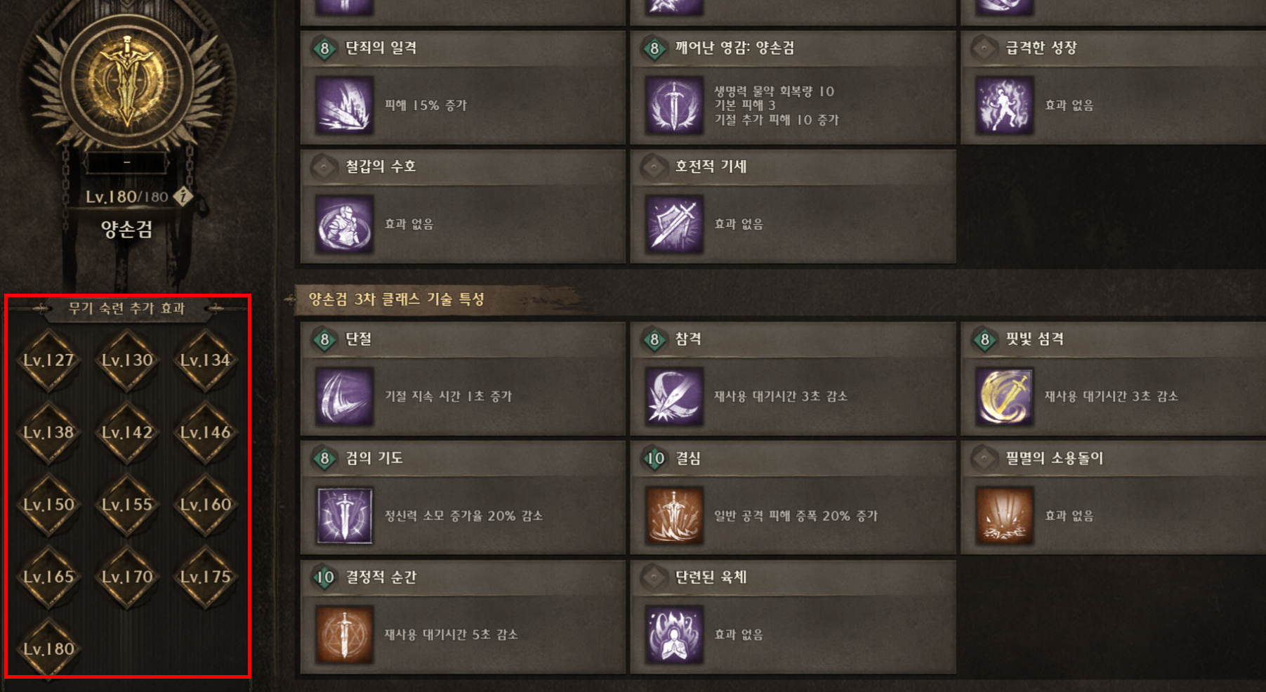 ◦ 무기 숙련 추가 효과는 Lv.150 이상부터 5레벨마다 해금됩니다.
